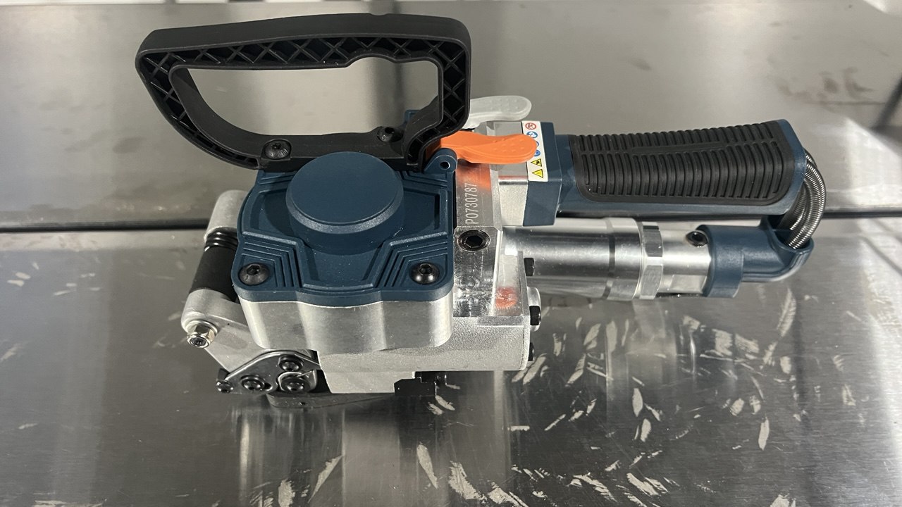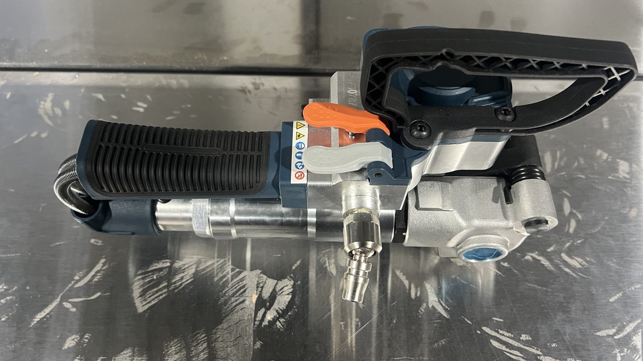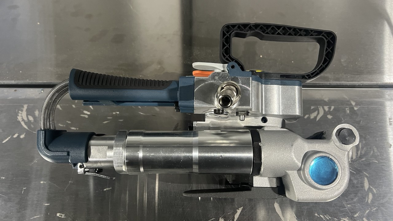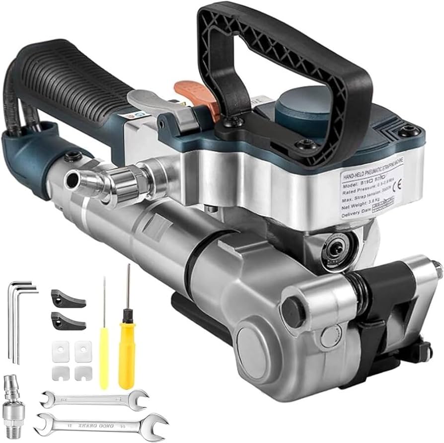 SP-B-19 — промышленный пневматический инструмент для обвязки грузов пластиковой лентой. Предназначен для работы с тяжёлыми и крупногабаритными грузами, где требуется высокая сила натяжения и надежная фиксация.