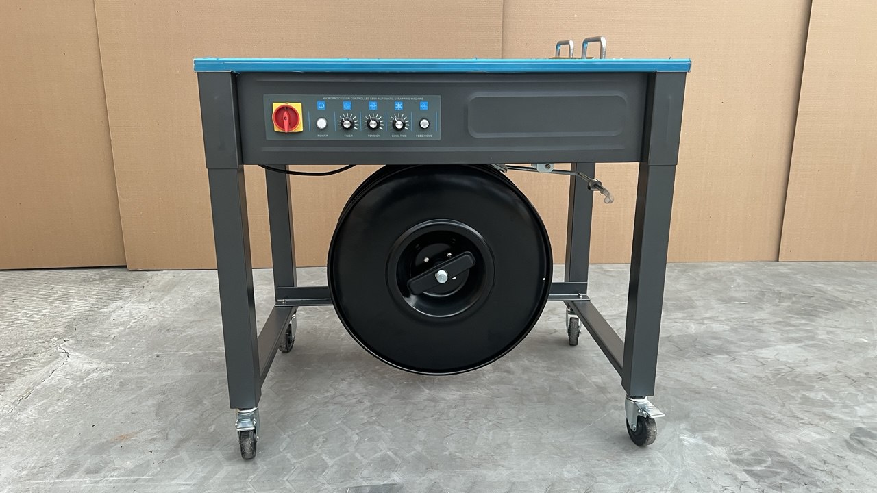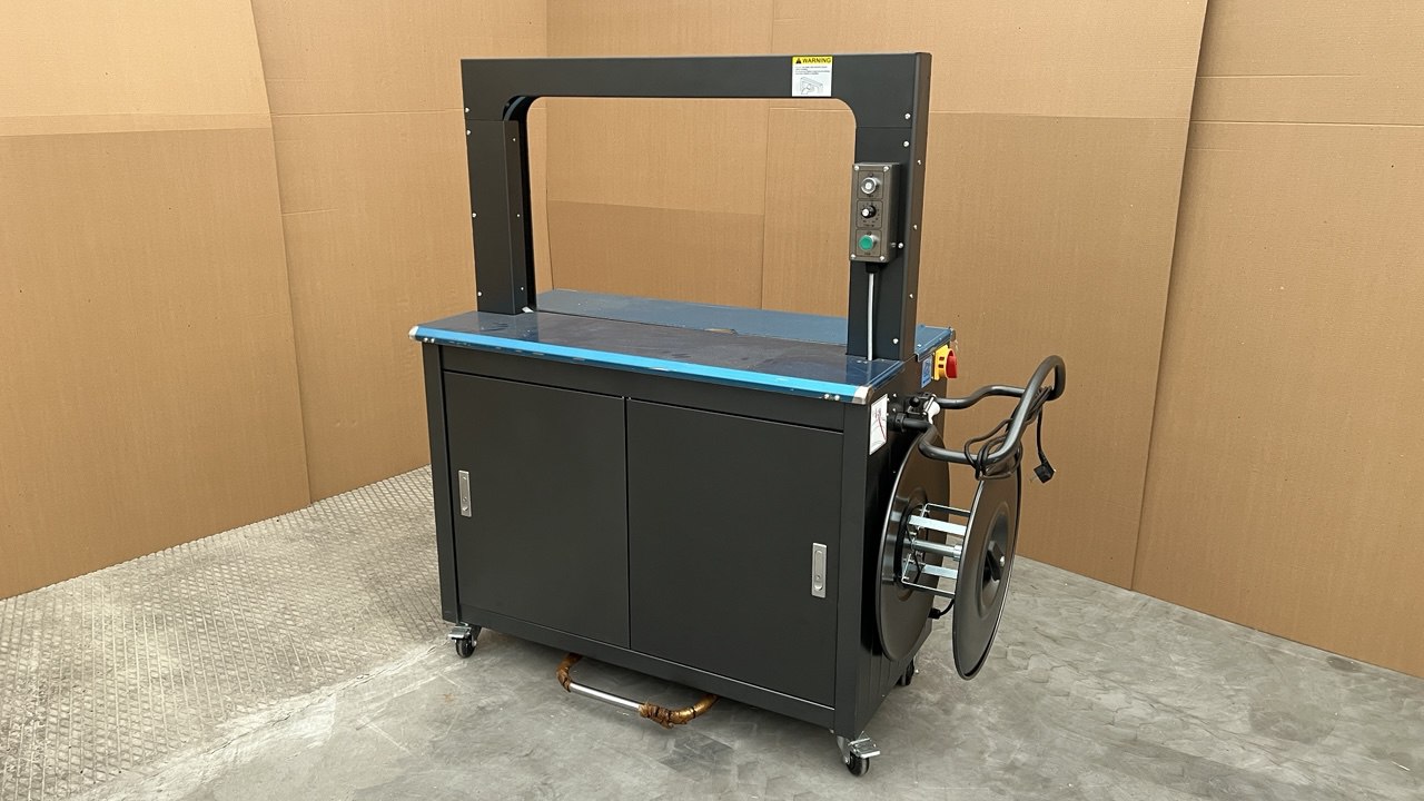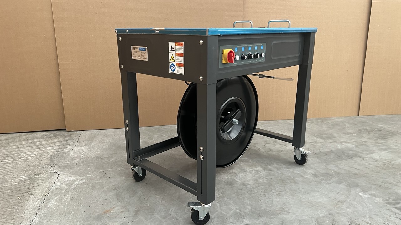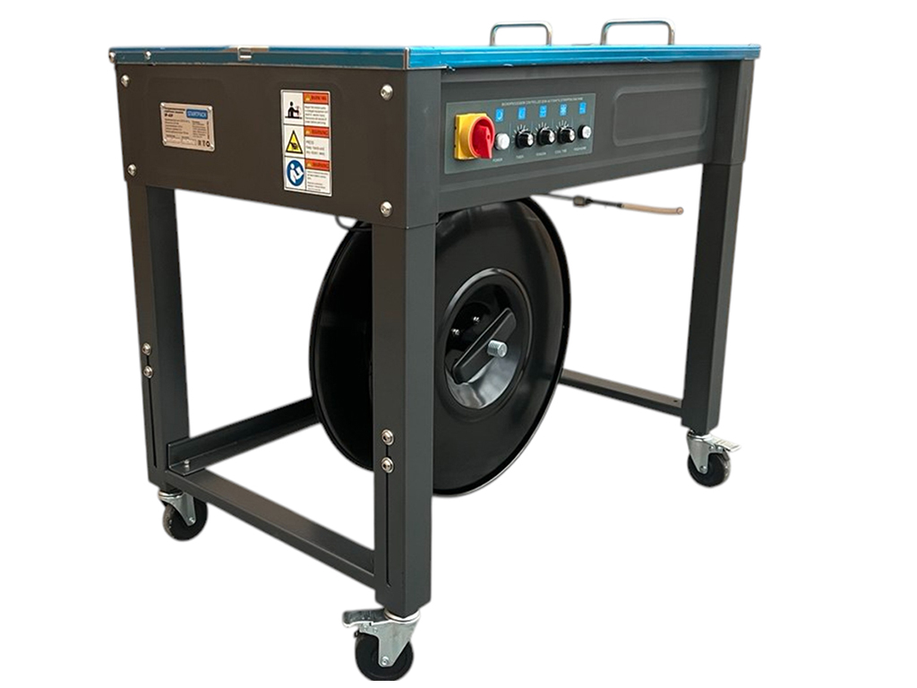 SP-A3-F — это надежная полуавтоматическая стреппинг-машина напольного типа, предназначенная для обвязки коробов, пачек, строительных материалов и другой продукции полипропиленовой лентой.