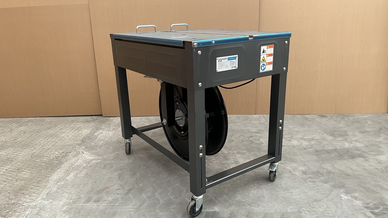 Машина автоматически выполняет натяжение, сварку и обрезку ленты. Оператору достаточно установить упаковку на рабочий стол и вручную обвести ленту вокруг груза.