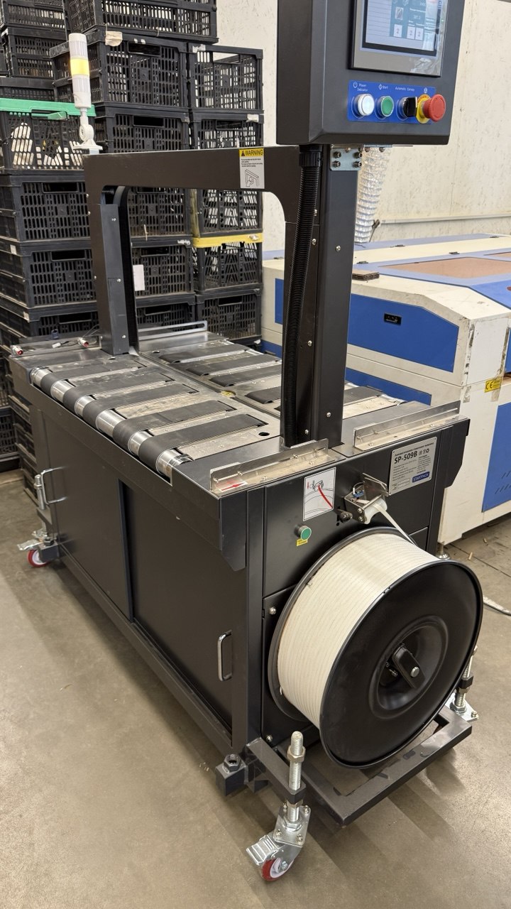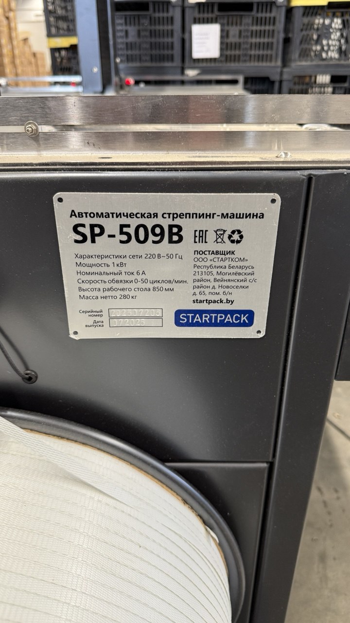 SP-509B — это высокоскоростная автоматическая стреппинг-машина, оснащённая приводными ремнями, датчиками контроля местоположения изделия. Модель предназначена для интенсивной промышленной эксплуатации и обеспечивает стабильное и плотное обвязывание ПП лентой.