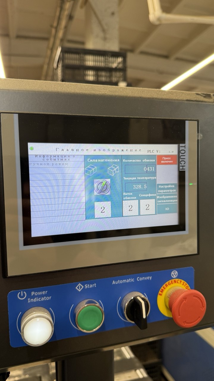 Машина автоматически перемещает изделие и в необходимом месте производит обвязку ПП лентой. Может работать в производственных линиях.