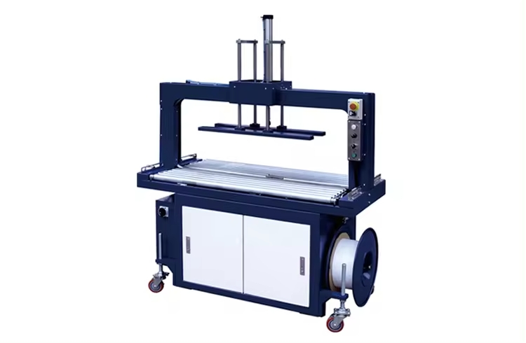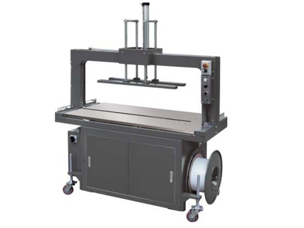 Наличие прижима делает оборудование особенно эффективным при упаковке лёгких, нестабильных или высоких коробов. Машина автоматически выполняет подачу ленты, натяжение, сварку и обрезку, что позволяет значительно ускорить процесс упаковки.