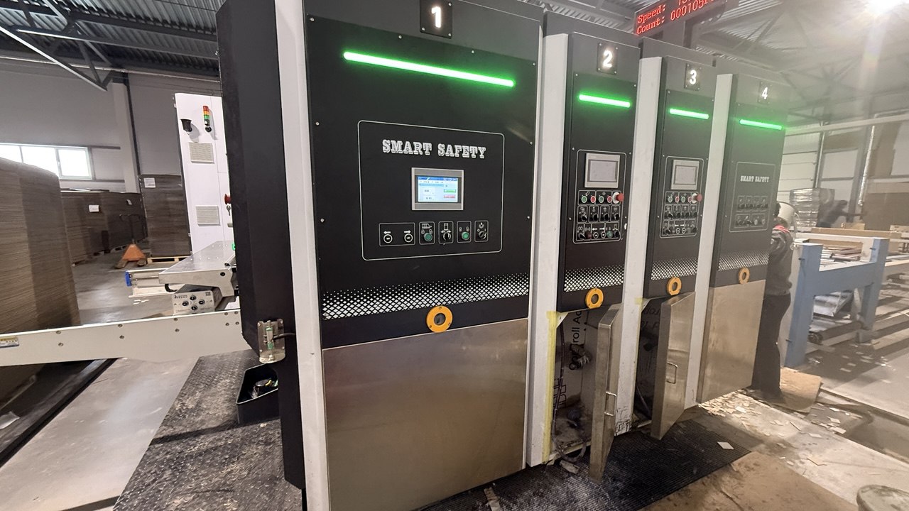 Станок оснащен сервоприводами, вакуумным трансфером, быстрой сменой штанцевальных форм и флексоформ.