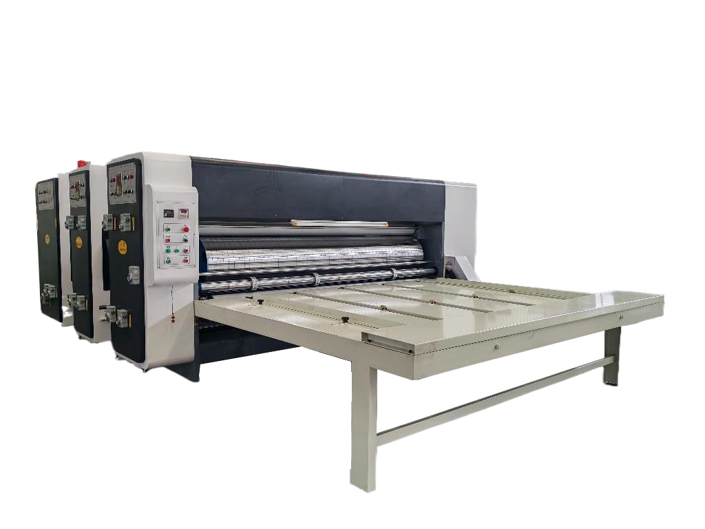 С помощью этой линии за один проход заготовки выполняются следующие операции: – запечатывание заготовки текстом и/или рисунком (2 цвета); – вырубка упаковки сложной конструкции с использованием ротационных штанцевальных форм (базовая комплектация); – просечка пазов и клеевого клапана четырехклапанных ящиков (при комплектации со слоттерными муфтами) без использования ротационных штанцевальных форм.