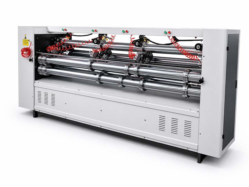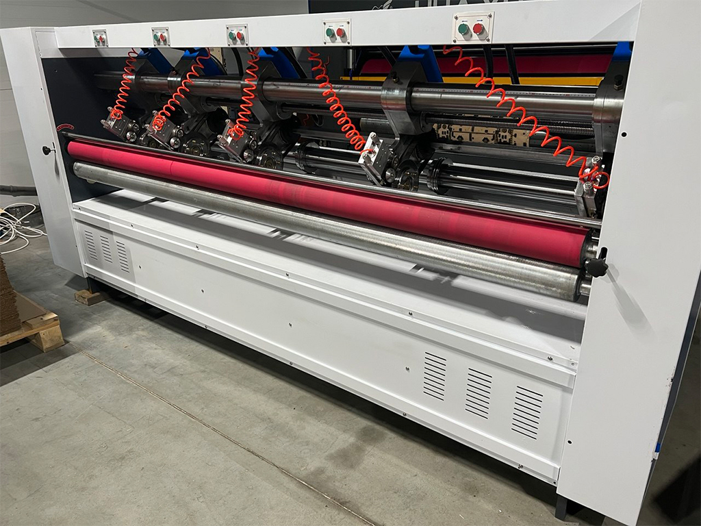 Оборудование использует технологию тонких дисковых ножей (thin blade), обеспечивающую чистый рез без заусенцев и деформации материала. Станок подходит для работы с трех-, пяти- и семислойным гофрокартоном, широко применяется на линиях производства коробок и упаковки.